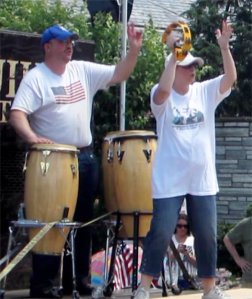 I bang my buffalo drum, Joe slams his congas,